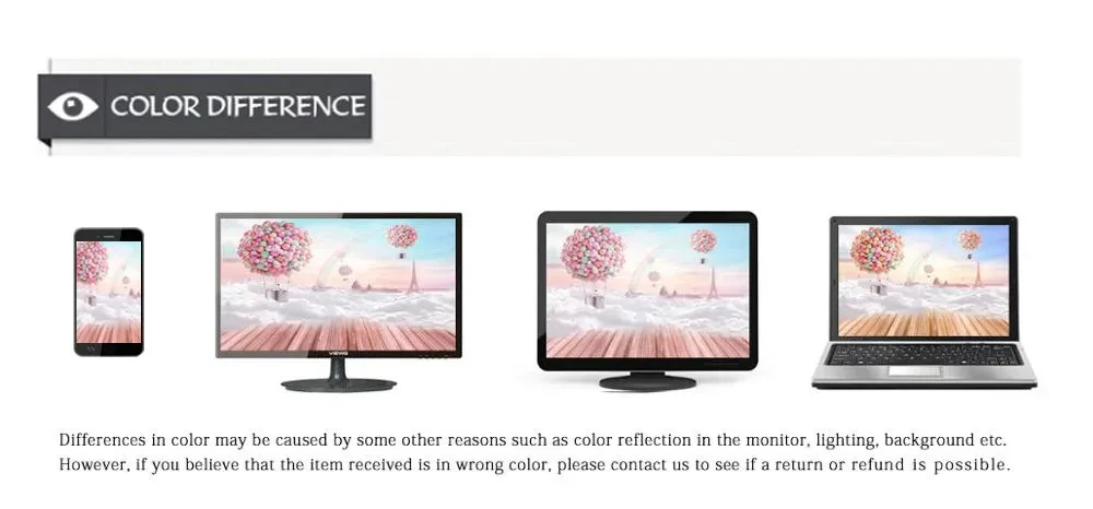 Please note that there are many different display resolution between every computers, so the color shownon screen may have chromatic aberration. We will try our best to avoid this situation, thanks for yourunderstanding.
